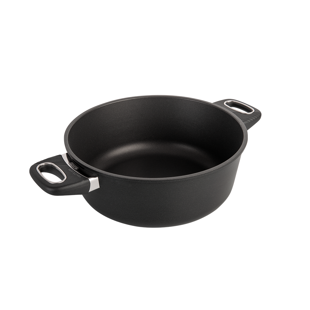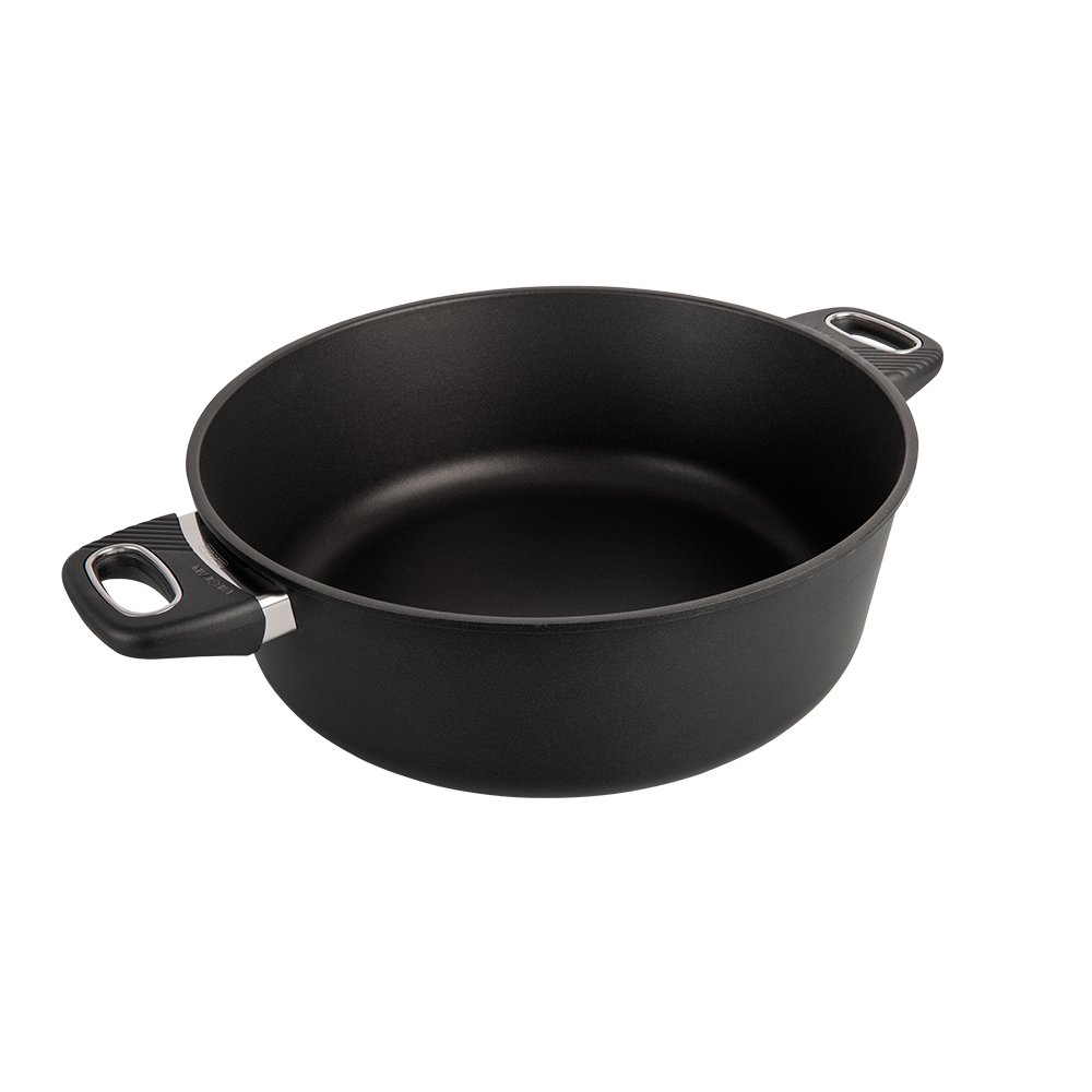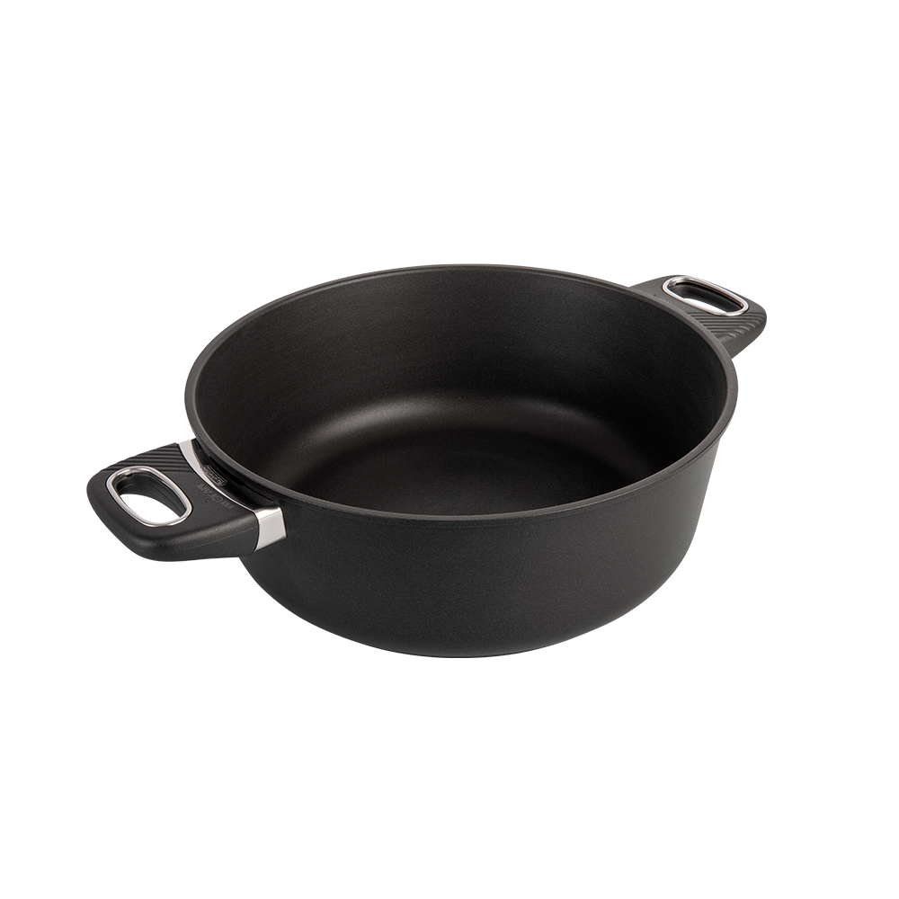 En premium stekgryta i flera storlekar med patenterad Biotan-beläggning, 8 mm tjock botten och tillverkad av återvunnen svensk aluminium – för hållbar och problemfri matlagning varje dag.
